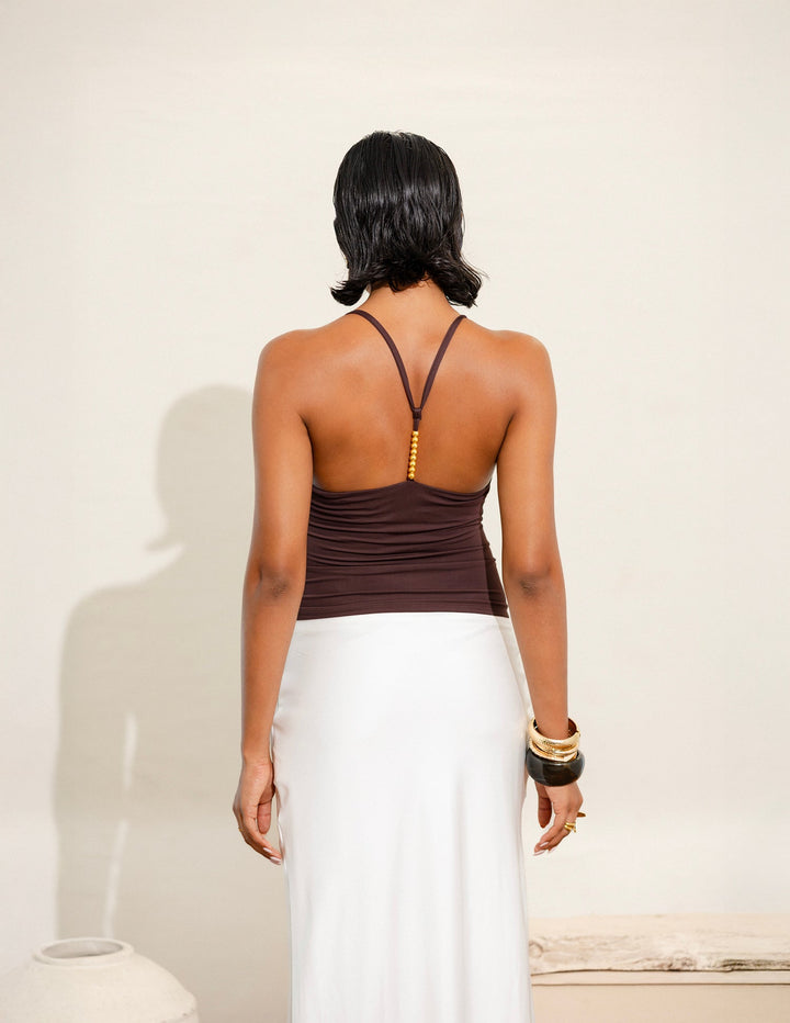 Back Bead Detailed V Neck Top